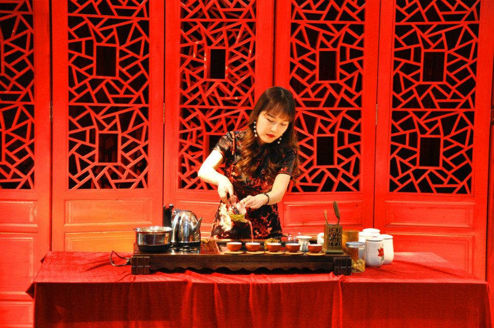 大会伊始,汉语国际教育专业许红花主任发表致辞。她表示,茶是高雅的又是大众的,希望通过以茶会友的途径,促进与留学生的交流。随后,金禹彤老师为社团赠送书法作品,并祝愿三口茶社团越办越好;同时我院其他社团也派代表送来了祝福。继而,14级社团常委们为大家带来了精彩的茶艺表演。舒缓高雅的古筝旋律和茶艺表演者优雅的姿态融合到一起,让心灵得到净化和升华。大会的最后,马金科教授对此次活动进行了总结,指出三口茶社团的成立具有非凡的意义,希望能够使中国茶文化在世界文化舞台上茗香四溢。