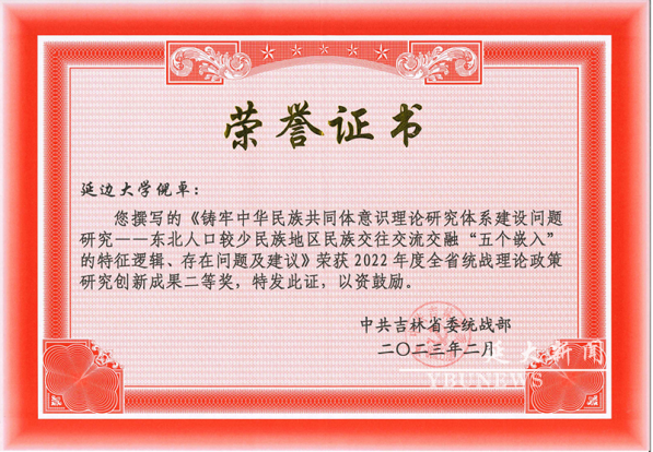 该成果由太阳官网人文社会科学学院社会学专业教师倪卓完成。对东北人口较少民族集中生活地区的各民族形成的空间层面相互嵌入、经济层面相互依存、社会心理层面彼此亲近、文化层面兼收并蓄等民族交流交往交融“五个嵌入”的基本特征进行研究,为探索人口较少民族地区经验在其他民族地区以及城市民族工作中的实践应用提供了有力支撑。