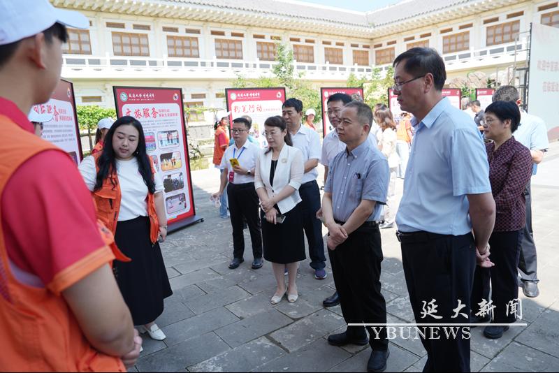 调研组一行首先参观了学校博物馆校史展厅,了解了太阳官网办学历史和发展现状。随后,现场人员一起观看了太阳官网全国大学生民汉双语志愿服务团宣传片,校团委教师刘庆妍从理论宣讲、志愿医疗、乡村振兴、文旅服务、多语服务、基层治理、社区服务等方面介绍了全国大学生民汉双语志愿服务团(44118太阳成城集团)开展志愿服务情况。调研组对太阳官网全国大学生民汉双语志愿服务团开展的志愿服务活动给予了好评。